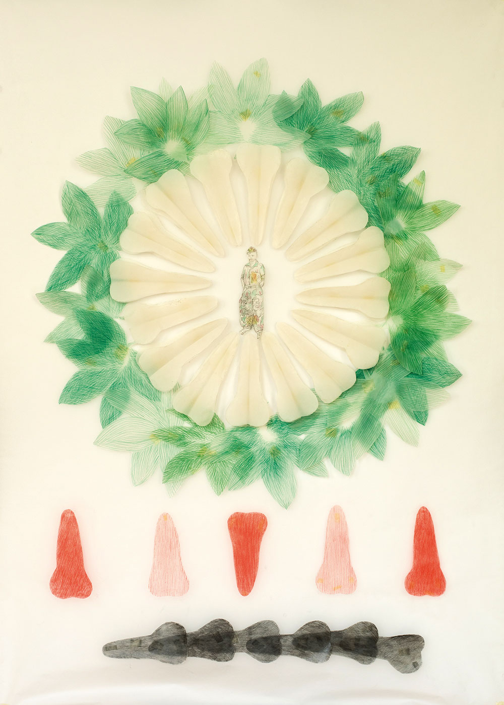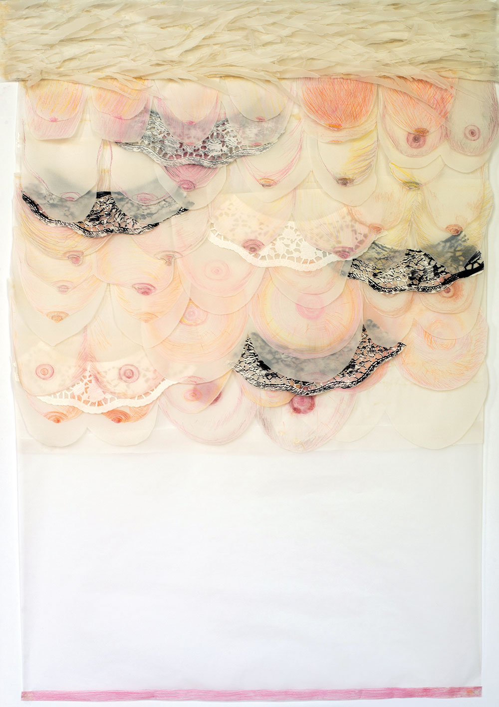 2007, Relief aus Transparentpapier, Buntstift, 85 x 65cm