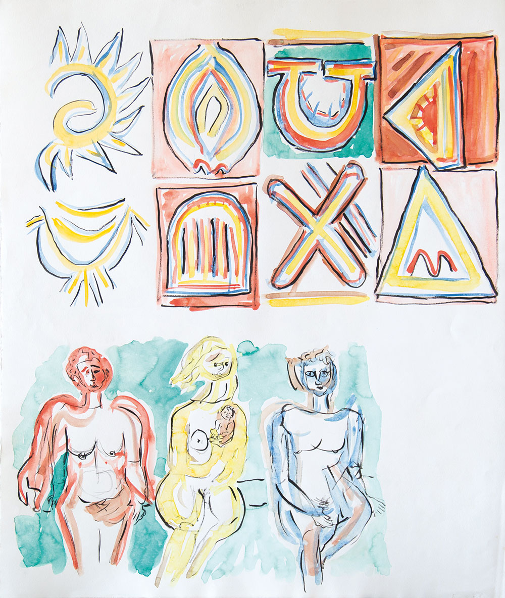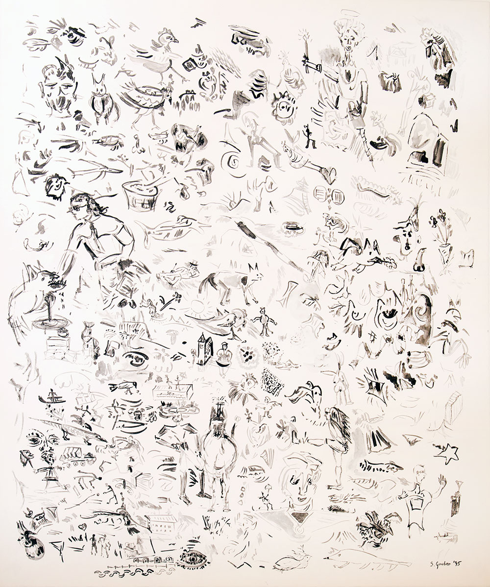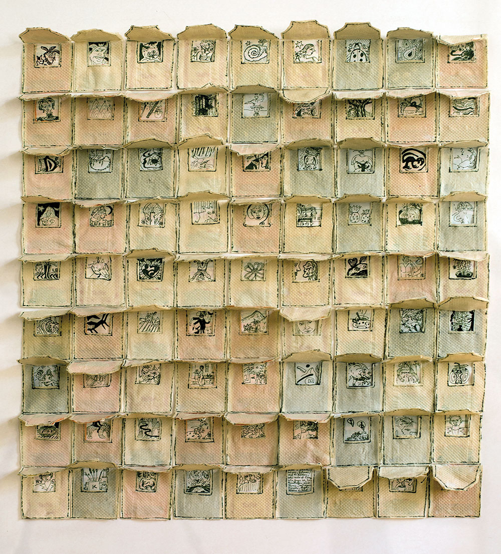1994, Collage, Teil des Teesackerl-Tryptichons, Papier, Tusche, 70 x 60cm