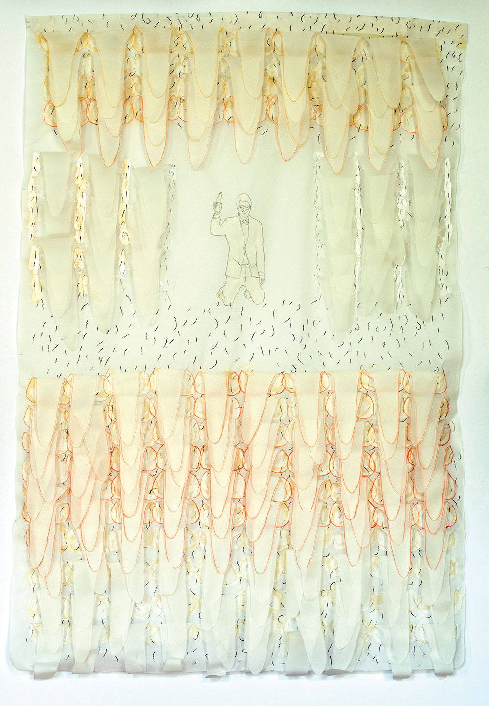 2007, Relief aus Transparentpapier, Metall, Bleistift, 180 x 80cm